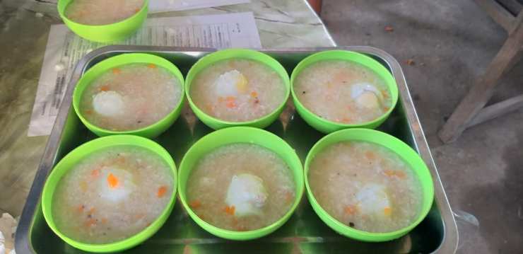 Some of the kids will separate the egg from the soup to take home to share with siblings or eat later